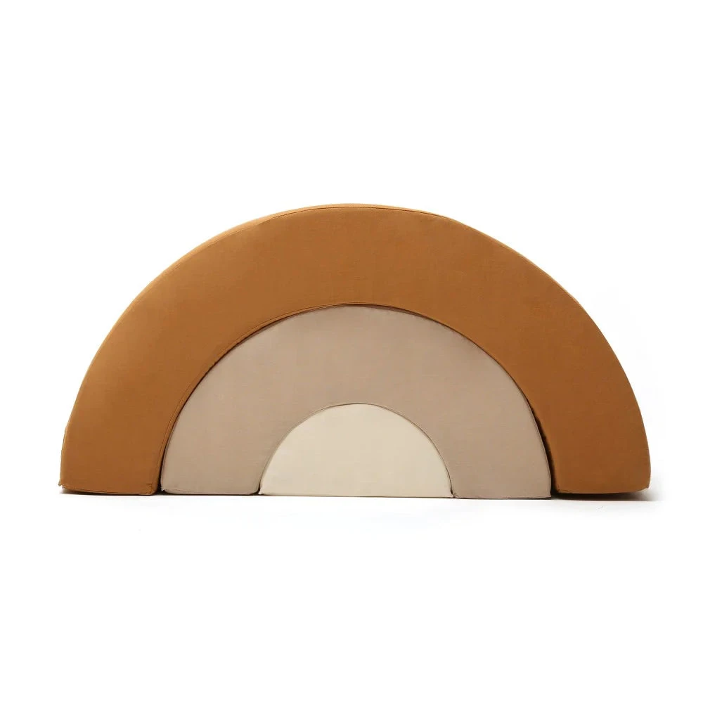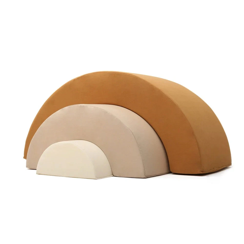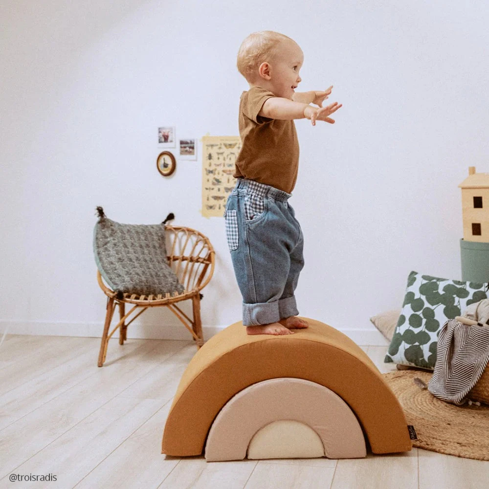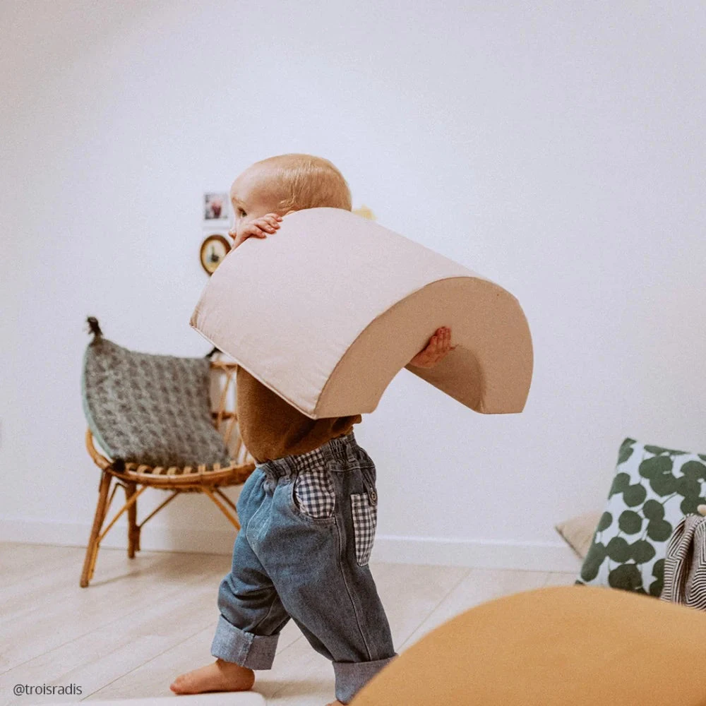 Charlie Crane’s playset MILO serves both as a decorative design element and an interactive toy, ideal for your baby’s nursery or toddler’s bedroom. Comprising three interlocking half-moon cushions, it transforms into a delightful rainbow that can be used as a pouf, a hideaway, a passageway, a building set … offering versatility as an open-ended toy. Suitable for children aged 9 months and older.