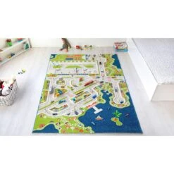 The Mini City Rug features an airport, parks, marina, ocean and more! The IVI rugs are designed to create hours of fun for kids. This rug is 3D and provides a large range of textures for your little one to play with their cars, farm animals, planes, boats and more!
