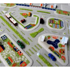 The Mini City Rug features an airport, parks, marina, ocean and more! The IVI rugs are designed to create hours of fun for kids. This rug is 3D and provides a large range of textures for your little one to play with their cars, farm animals, planes, boats and more!