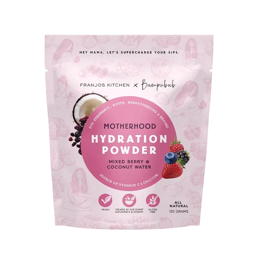 Franjos Motherhood Hydration Powder is a healthy way to hydrate your hardworking body. With the delicious taste of mixed berry and hydrating powers of coconut water, it’ll turn your drink bottle into your bestie.Â