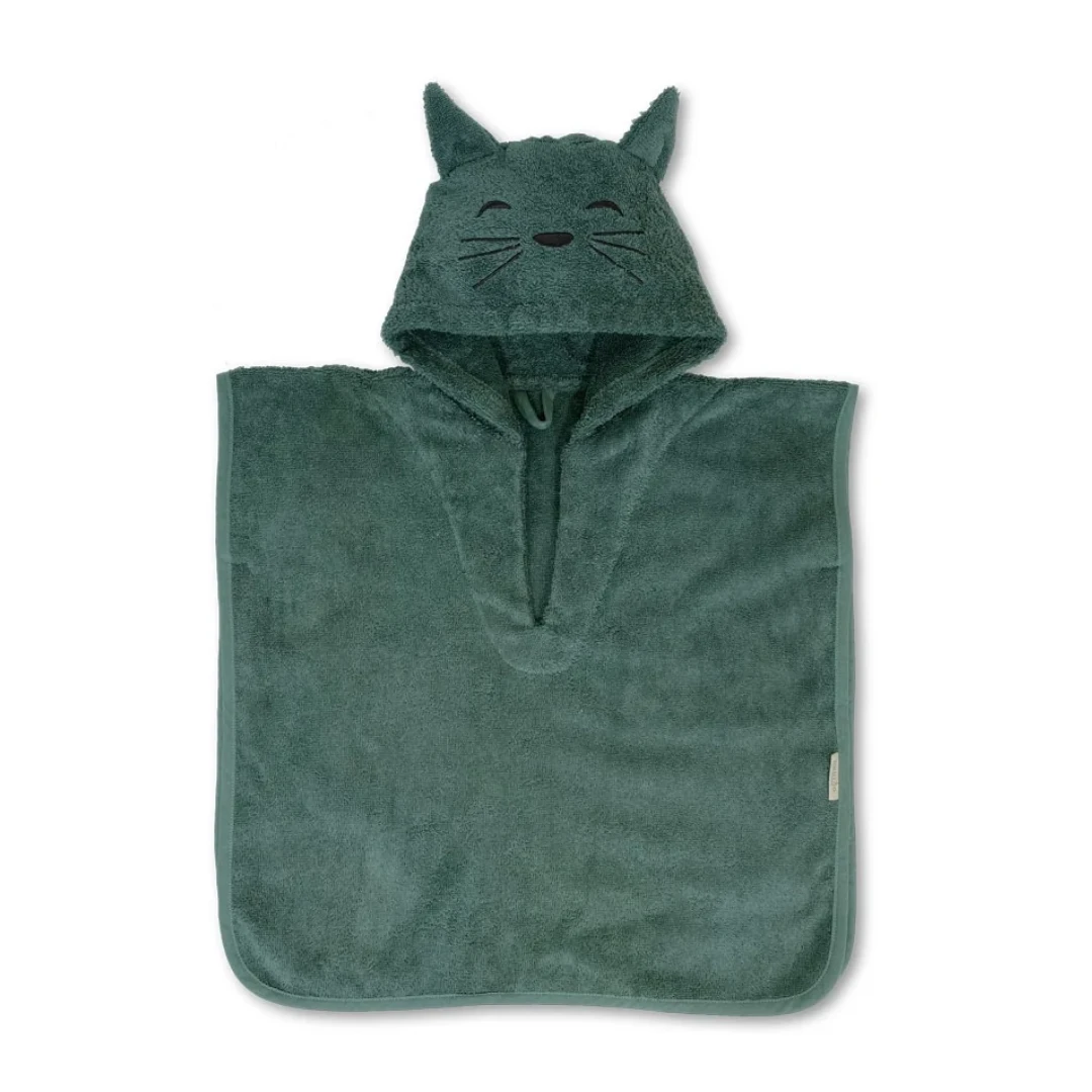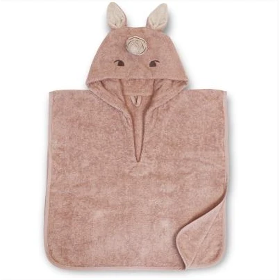 Super soft Poncho with embroidered animal face and ears on the hood. The Poncho is made in 100% Soft Organic Cotton Terry, which keeps your child dry and warm.