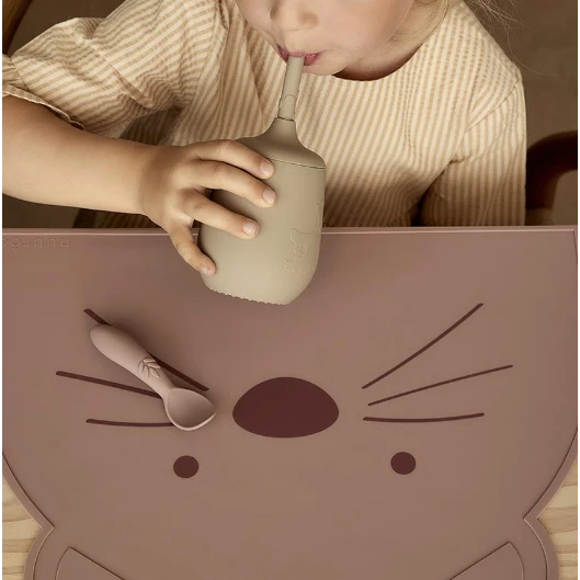 Our Adita Silicone Cup is designed with a removable lid with a small spout and straw. The cup and straw is made in soft LFGB silicone and safe for your child to bite into