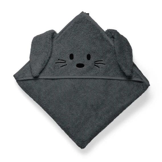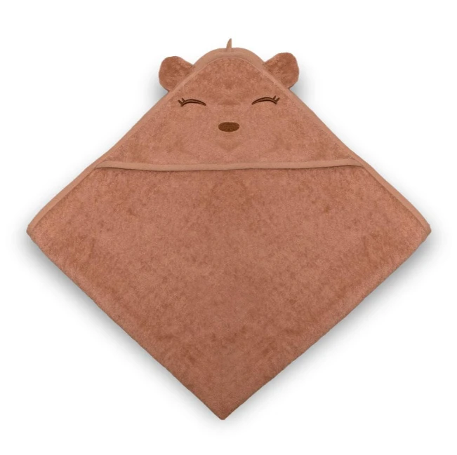The softest hooded towel in 100% organic cotton terry, perfect after a warm shower. Aki towel has an embroidered Bear face and ears on the hood.