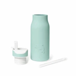 Lau drinking bottle with cute motive. The bottle is made of 100% LFGB silicone, which is free of harmful chemicals and approved for food. The lid is made of plastic without phthalates, and fits snugly to the bottle.