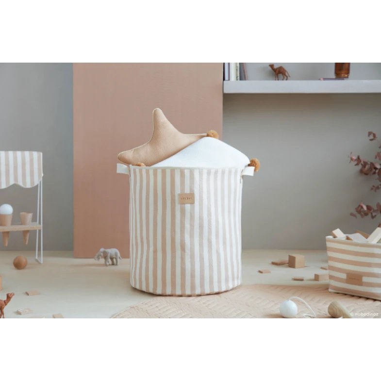This toy bag will allow your children to tidy up quickly and easily. Practical and pretty, it is easy to move around thanks to its cotton braid handle. Thanks to its elegant and timeless design, you can give it a double life as a laundry bag. –