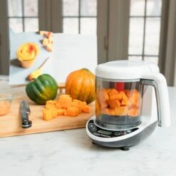- Automatically steams, then blends homemade baby food in one easy step. No transfer after cooking required like other baby food makers