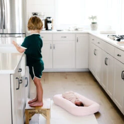 The Snuggle Me Lounger is a unique lounging pad designed to hug your baby’s full body. This snuggling sensation is highly effective at calming and comforting your baby when you need extra support.