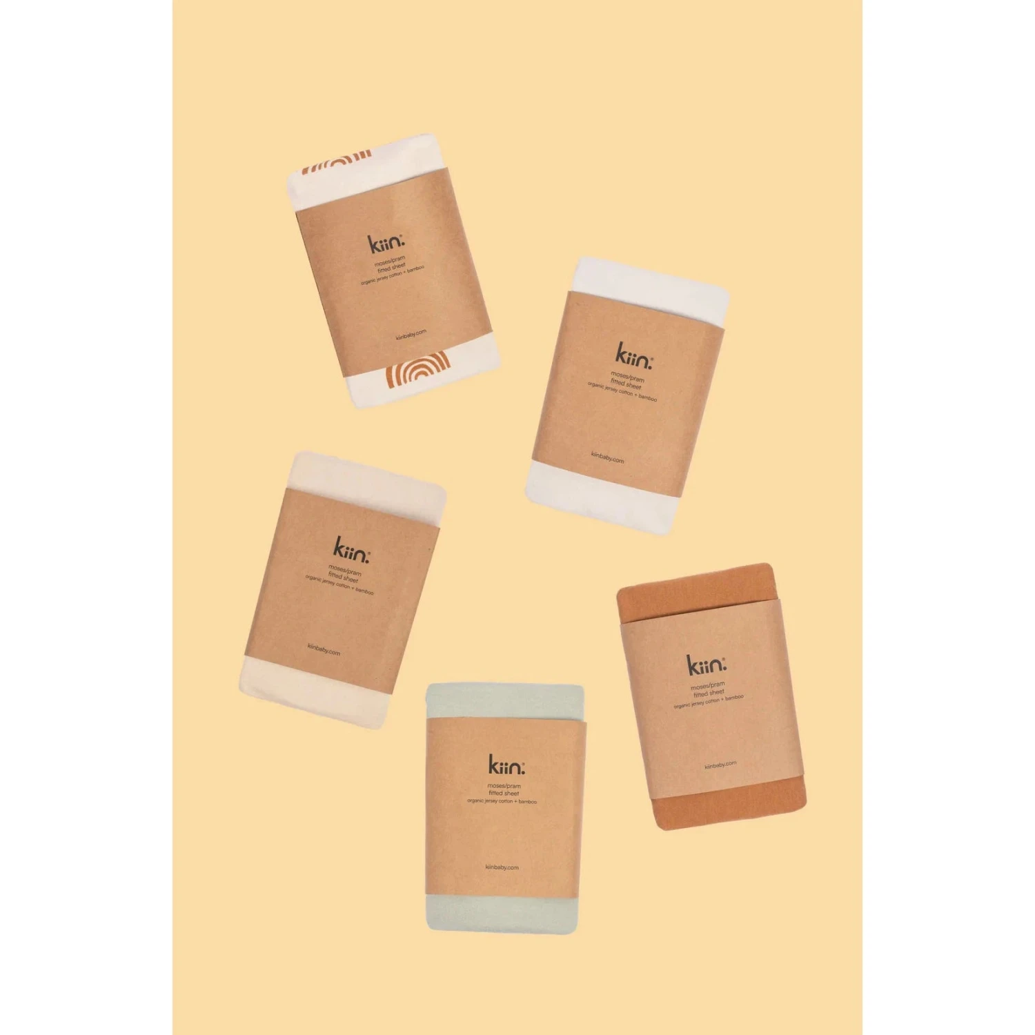 Kiin fitted sheets are made from the softest organic cotton + bamboo blend. They are soft and gentle against delicate skin, laying smoothly beneath your little one; even through tosses and turns. Kiin fitted sheets are breathable & ideal for all seasons and temperatures.