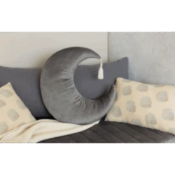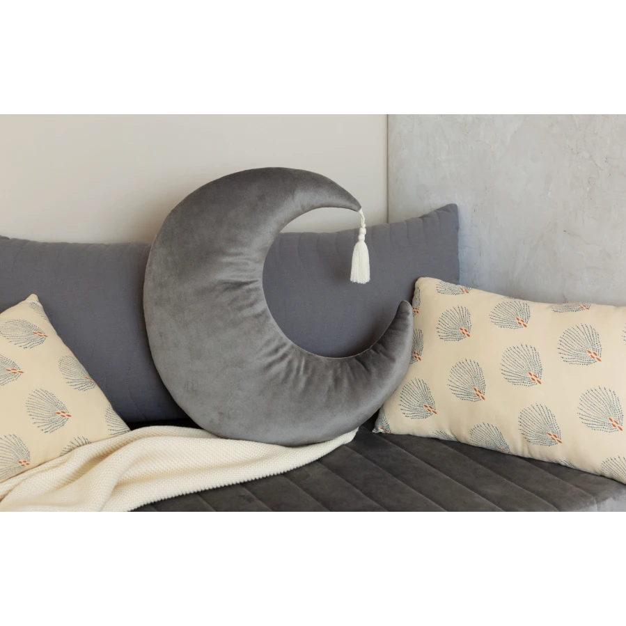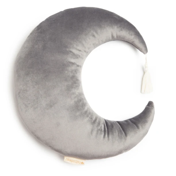 A soft cushion shaped like a moon that will take you to a magic universe, beneath the beeming of the moonlight.