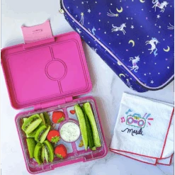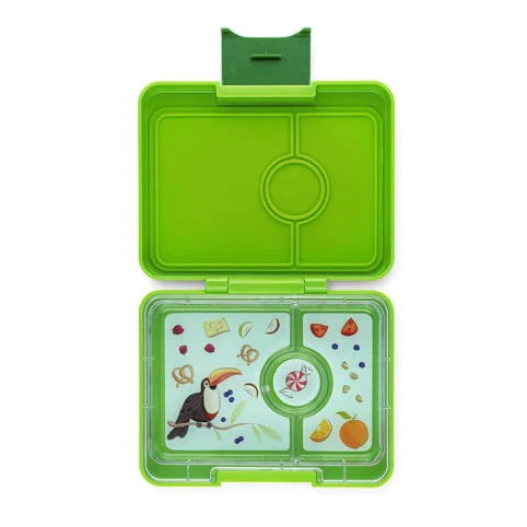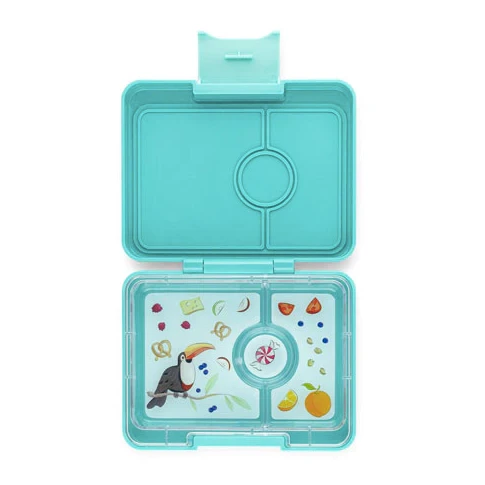 - Yumbox Snack is a leak-proof bento box with a kid-friendly latch on the lid. Pack wet foods like yogurt, fruit puree (not liquids like drinks/water/juice/watery dressings). Great for kids and adults alike