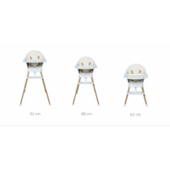 - Can be used at 62 cm as a child’s chair, at 80 cm for a standard table, and at 92 cm for the kitchen island.