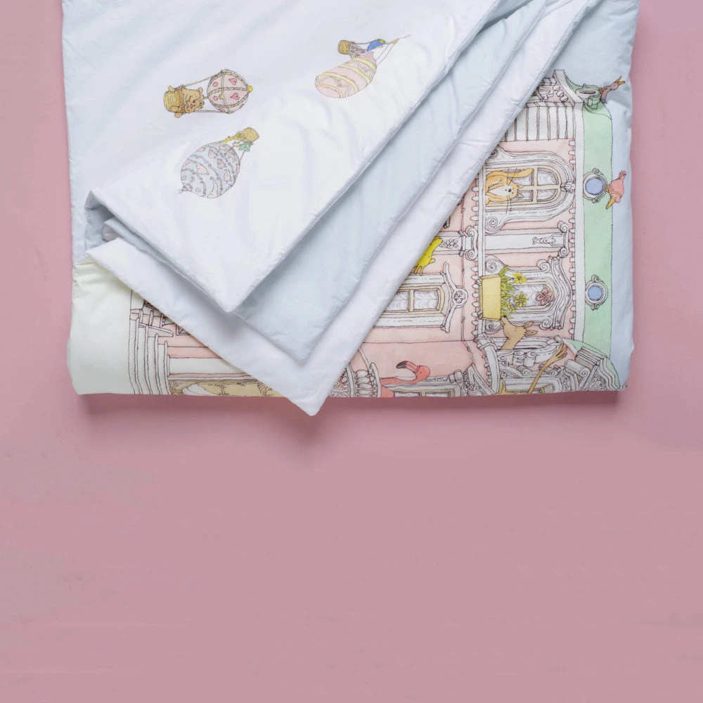 - Atelier Choux’s reversible quilt (duvet) features our best-selling Hot Air Balloons and Monceau Mansion prints, allowing one to instantly change the nursery décor from one moment to the next.