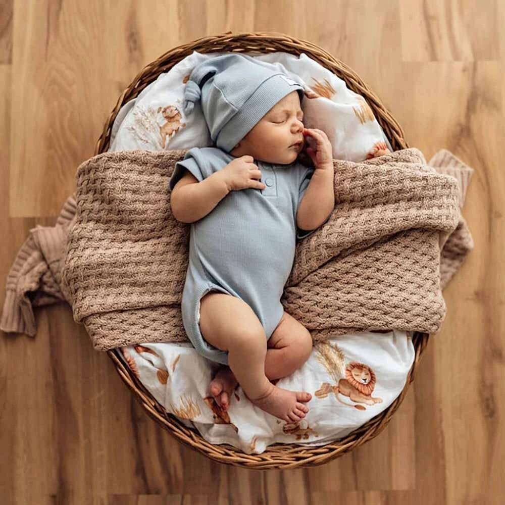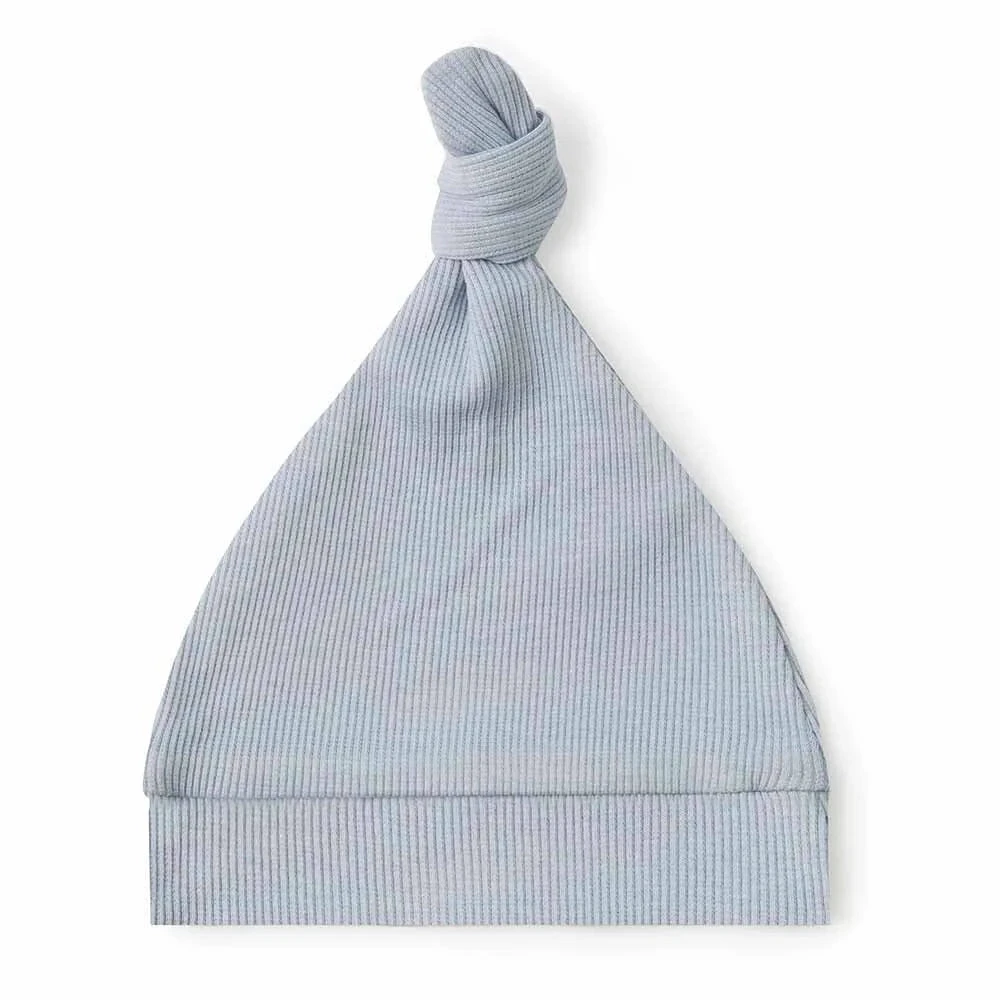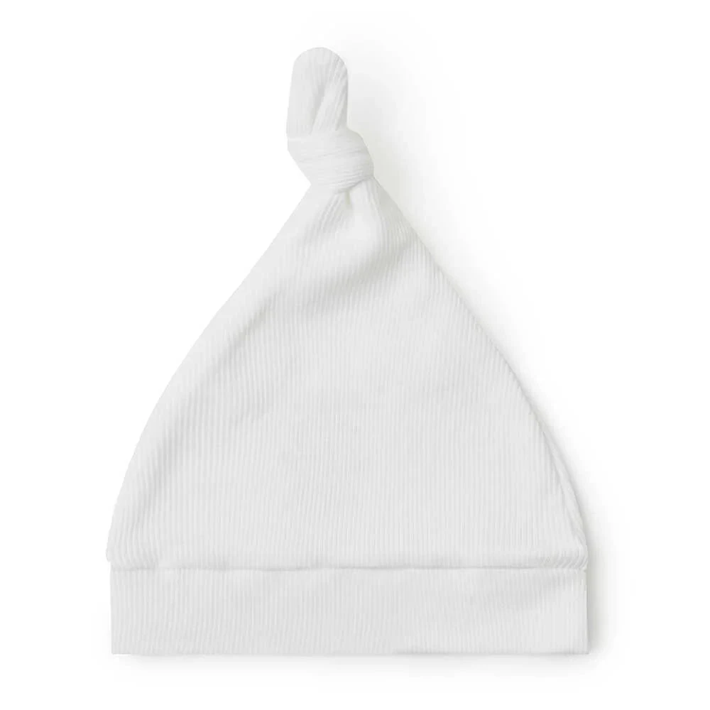 Our Snuggle Hunny Pebble Ribbed knotted beanie is soft and snuggly and made with Certified Organic cotton so you know bub has only the best. For newborns to 6 months old.