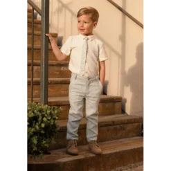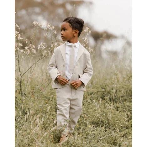 Our Sebastian Pant features tailored details made of soft textured cotton melange fabric. Pants include an adjustable elasticized waistband, zip fly with tonal wood summarys, and pockets. Wear it as a separate or better yet, suit up with the matching blazer and tie.