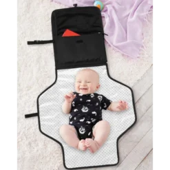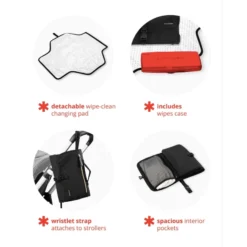 - Mesh pocket holds up to four large diapers, creams and other essentials