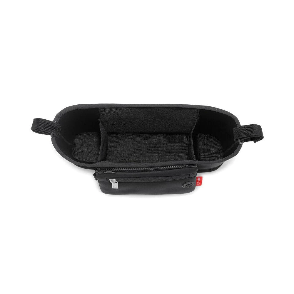 This insulated beverage and essentials caddy stretches to hold bottles and coffee cups securely, while providing easy access to your most important items. Fitting most stroller bars and handles, this organizer bag includes a detachable wristlet for errands and a headphone port for hands-free calls.