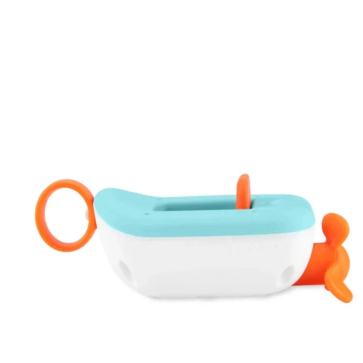 Ready for boatloads of tub time fun, just pull the string and set sail with Clark Croc. Our action-packed bath toy includes a wind-up airboat, a detachable fan that doubles as a water strainer, plus a cute crocodile squirtie. Little ones will love to make a splash while learning cause & effect, hand/eye coordination and more during tub time.