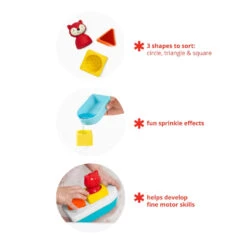 Sort, stack, pour & more with Ferguson Fox and his ship-shape boat! Our fun 2-in-1 shape sorter and stacker bath toy features cool water effects, floating pieces and our adventurous little fox. A great way to encourage fine motor skills and hand-eye coordination while having fun in the tub! Little ones will love to make a splash with our full line of ZOO® baby bath toys and bath toys for kids.