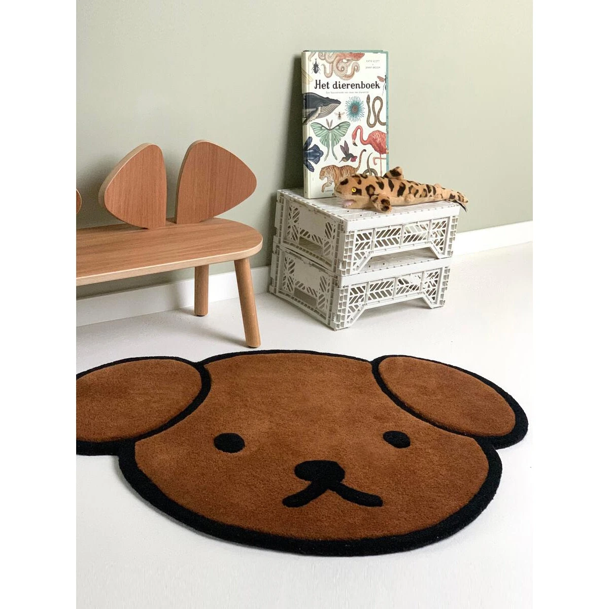 Add an eye-catcher to your kid’s room with snuffy. The brave little dog from miffy’s stories. The adventurous and mischievous dog illustrated by Dick Bruna is turned into a super-soft snuggly rug. Hand-tufted from 100% New Zealand wool, featuring