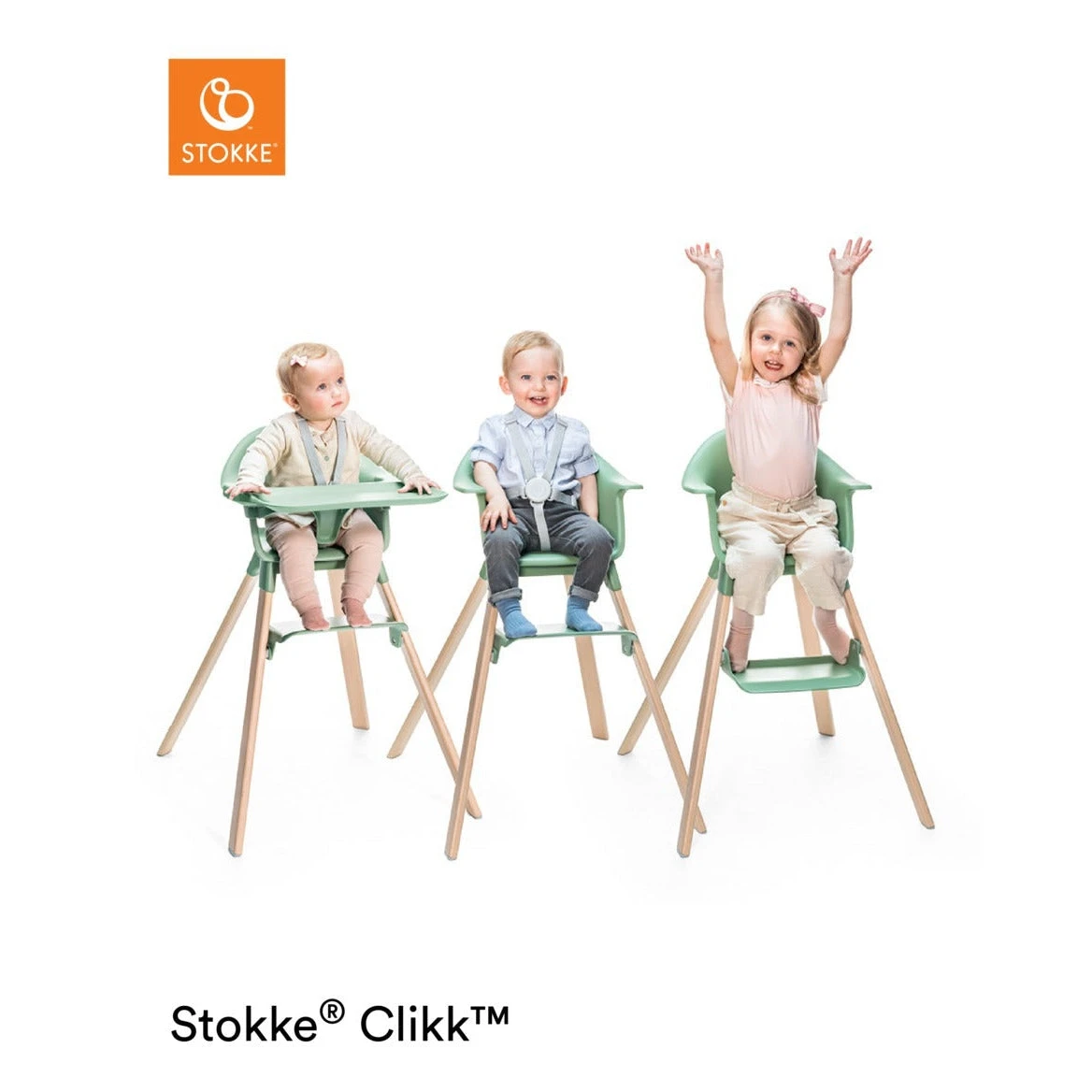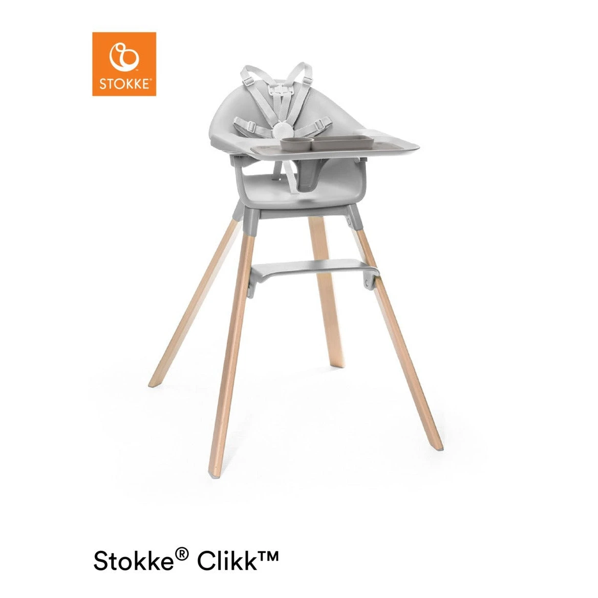 - The Stokke® Clikk™ High Chair with Tray and Harness is intended for children able to sit up unaided and up to 3 years or a maximum weight of 15 kg/ 33lbs.