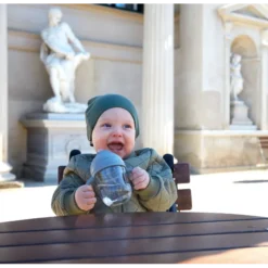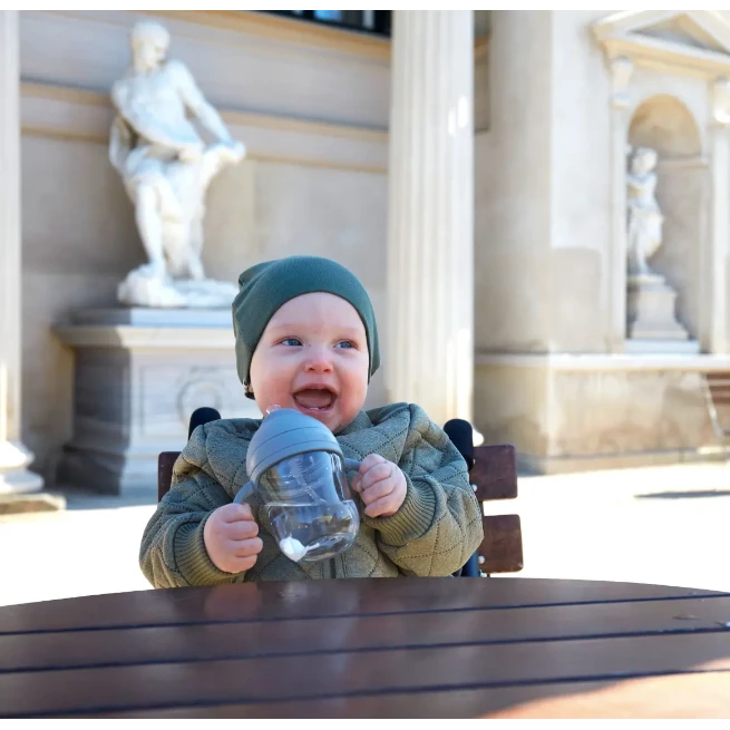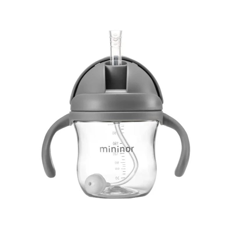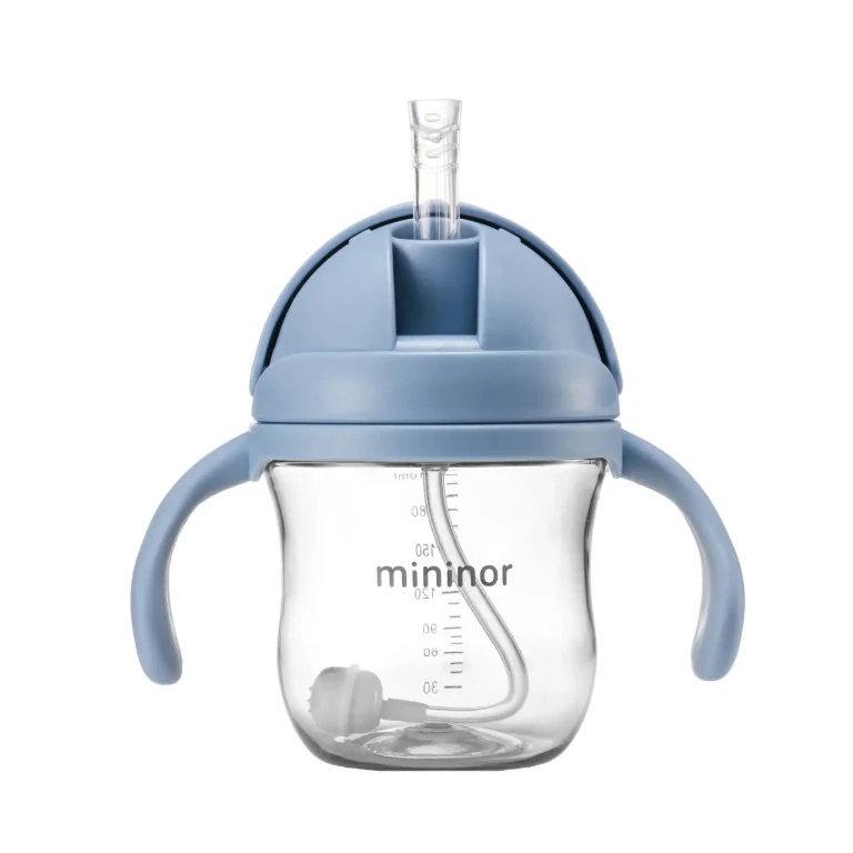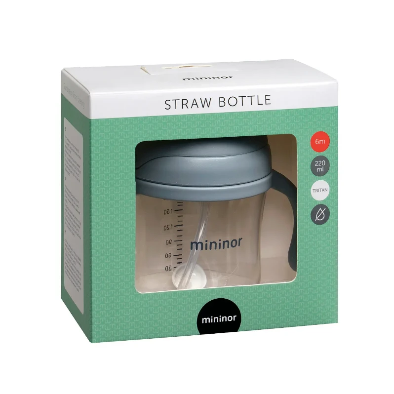 The Mininor Straw Bottle supports your baby to transition from breast or bottle to drinking from an open cup.