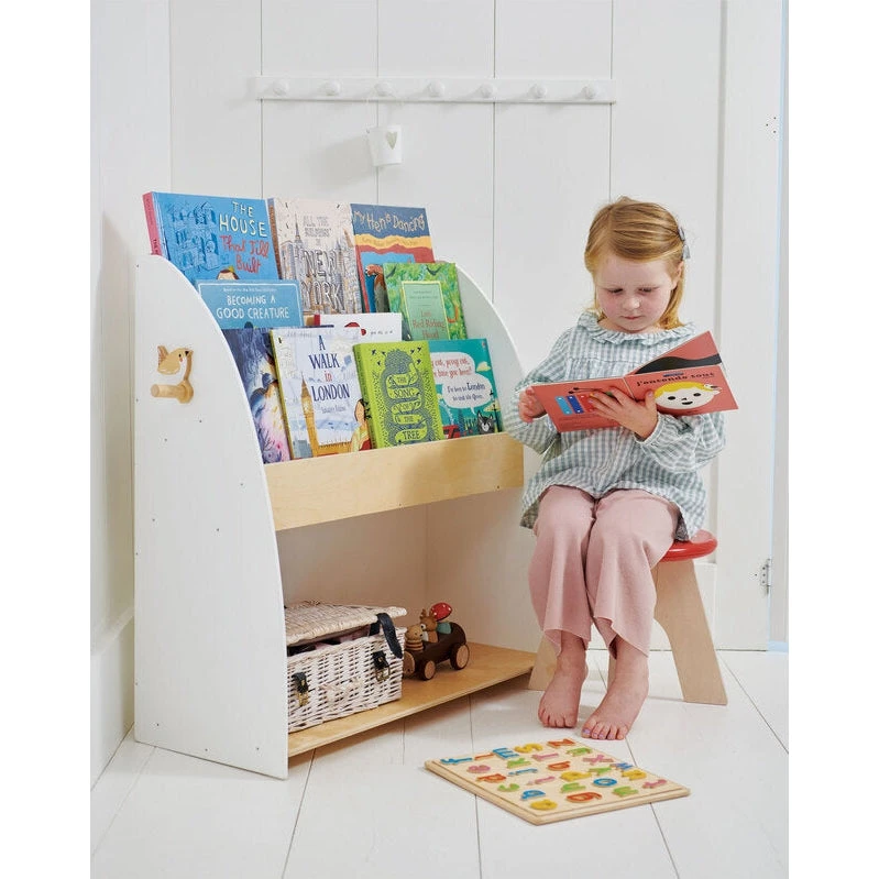 A sturdy, practical and stylish bookcase and storage unit. Crafted from plywood in natural and white with a little wren coat hook on the side. The lovely design makes it the perfect addition to a Montessori style playroom.