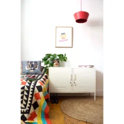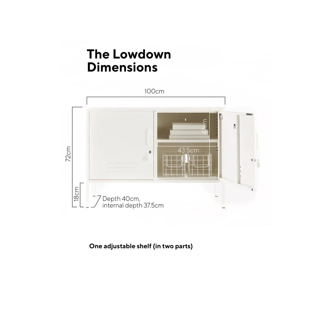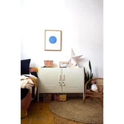 The Lowdown locker is your new favourite tv unit, console or office storage. She’s perfectly proportioned to make the most of that alcove as a tv unit but works just as well next to a bed, she’s seriously versatile! The cable holes in the back are perfect for all those messy tv chords + chargers so you can keep them neatly tucked away + the doors are lockable so all your precious things will be safely stored inside.