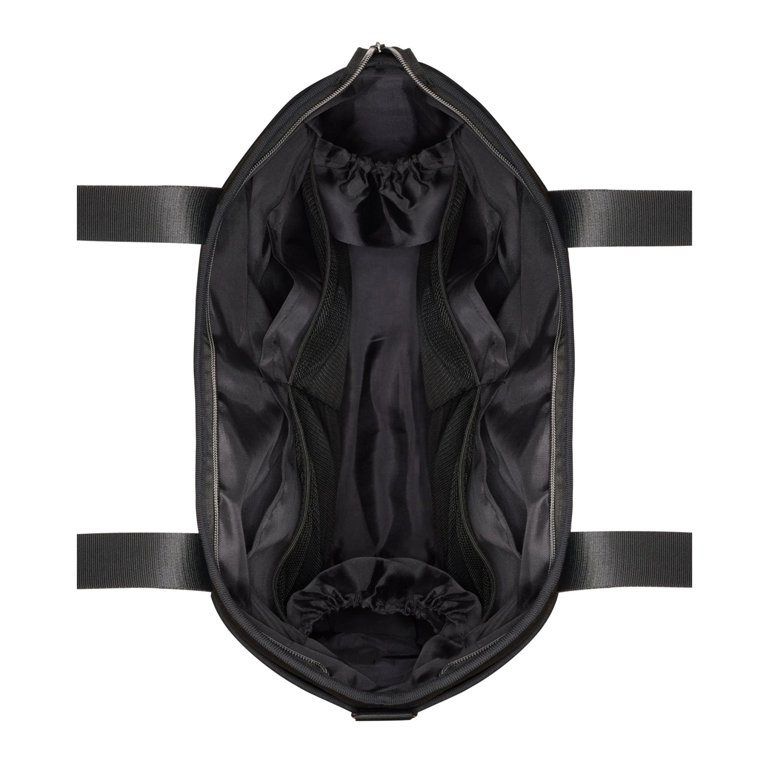 - Separate zippable bottom compartment