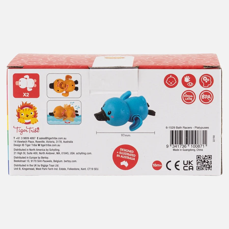 With two adorable swim-ready platypuses in the one set and no batteries required, simply wind them up, release them into the bath and then watch their little platypus arms turn as they race across the water.