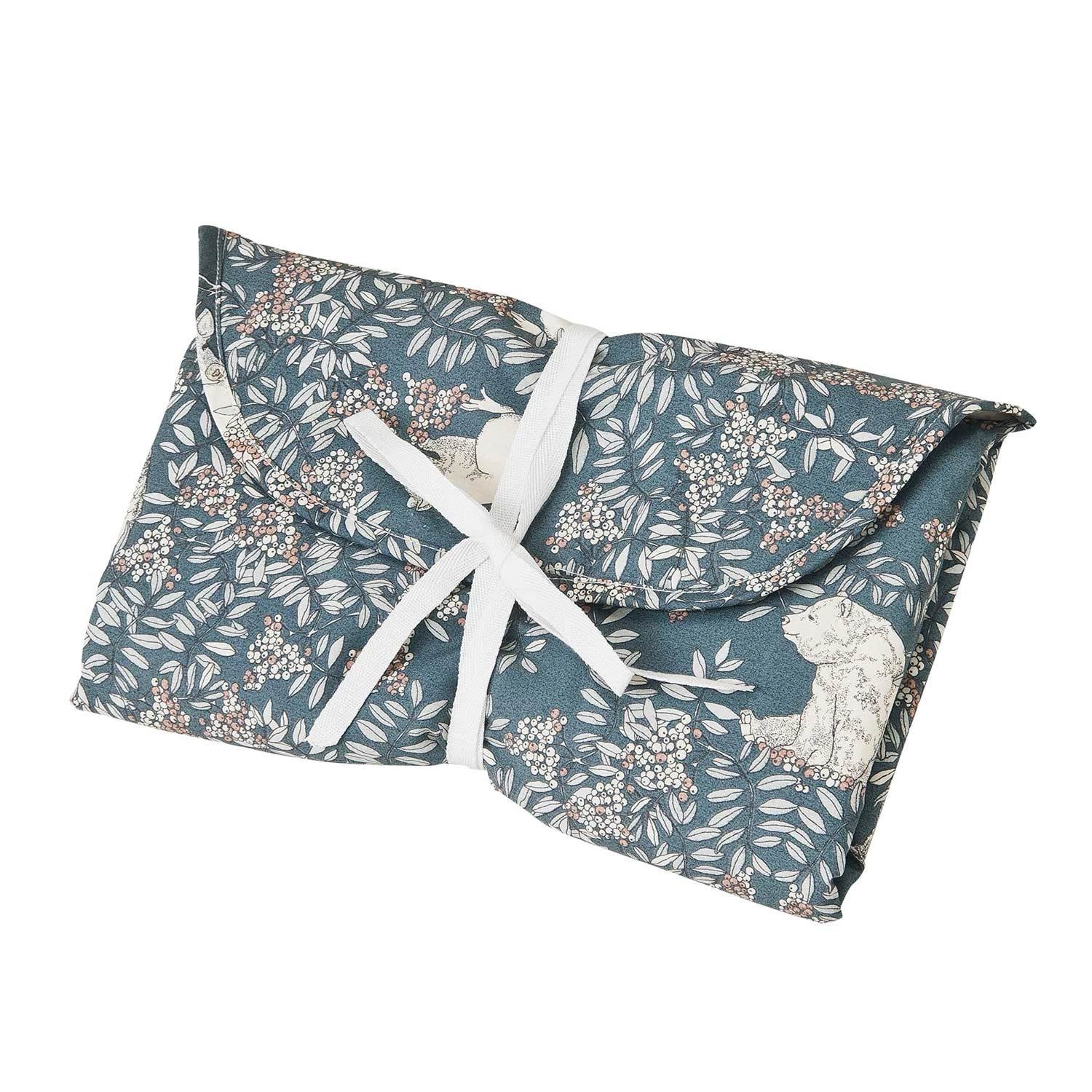 Garbo&Friends practical travel changing mats fold into an envelope bag. It gives your little one a soft and clean spot to lie on when it’s time for a change. You can fit extra diapers and a small pack of wet wipes inside for a clutch effect. Ribbons are used for closure and it is filled with OEKO-Tex certified non allergenic polyester. The fabric is produced by skilled craftsmen in Portugal.