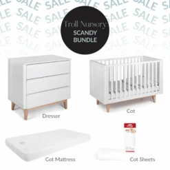 Scandy dresser is the perfect storage solution for your nursery and matches the Troll Scandy Cot. A stylish chest of drawers with European birch legs and three deep drawers on quality self-closing runners.