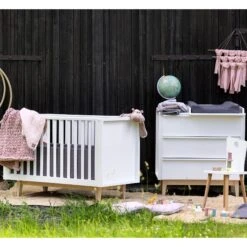 The mattress base has two settings; one high for an infant and one low for a mobile child. Later on, the cot converts to a toddler bed to stay in the family for years to come.