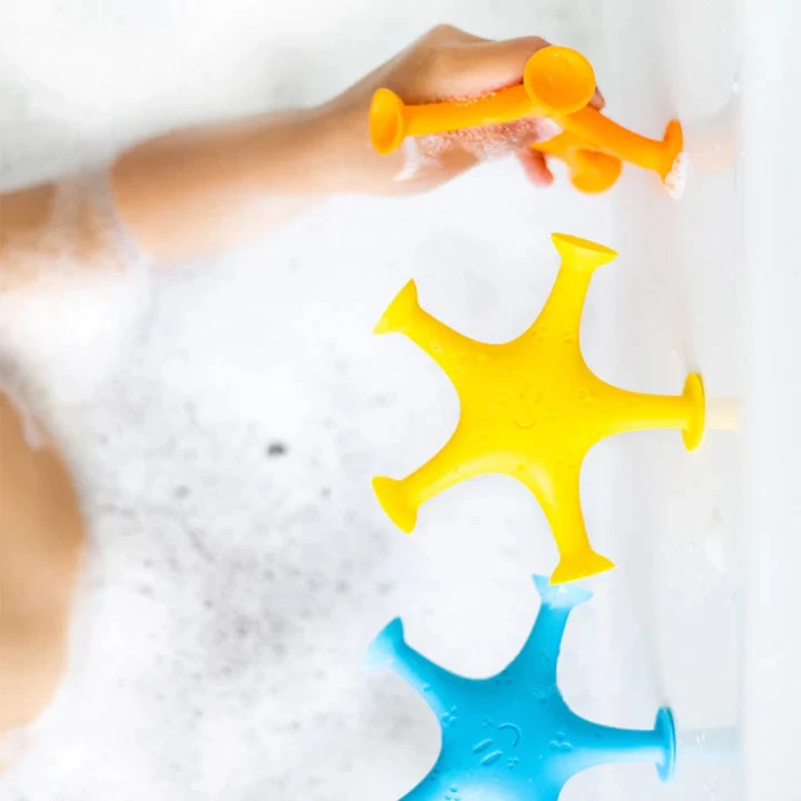 - RUBBERY SUCTION TOYS: starfish toys stretch and stick to the tub surface or stand on their own