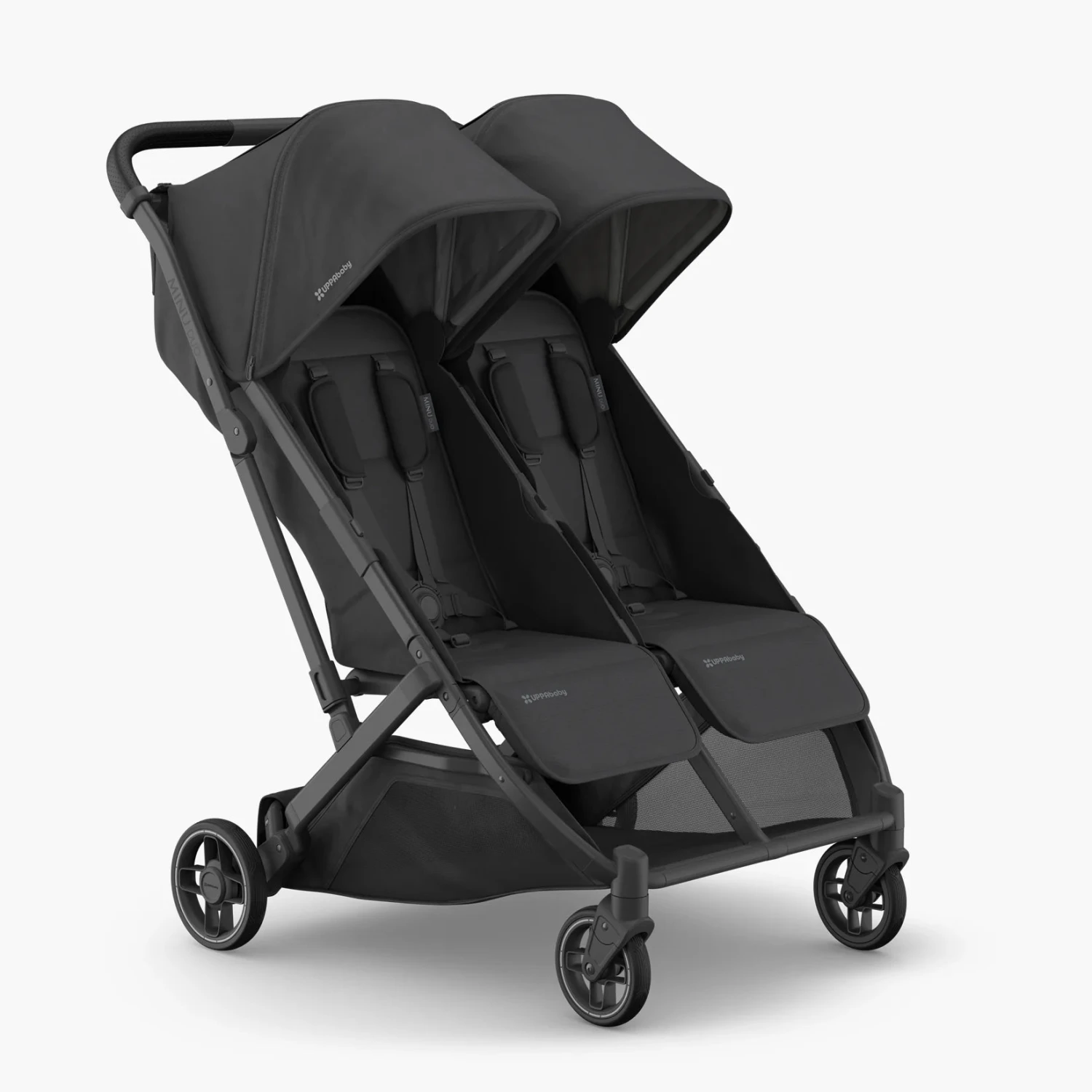 - One hand, one step fold with locking latch lets you fold the Minu Duo in seconds, and lift using the integrated crossbar carry handle