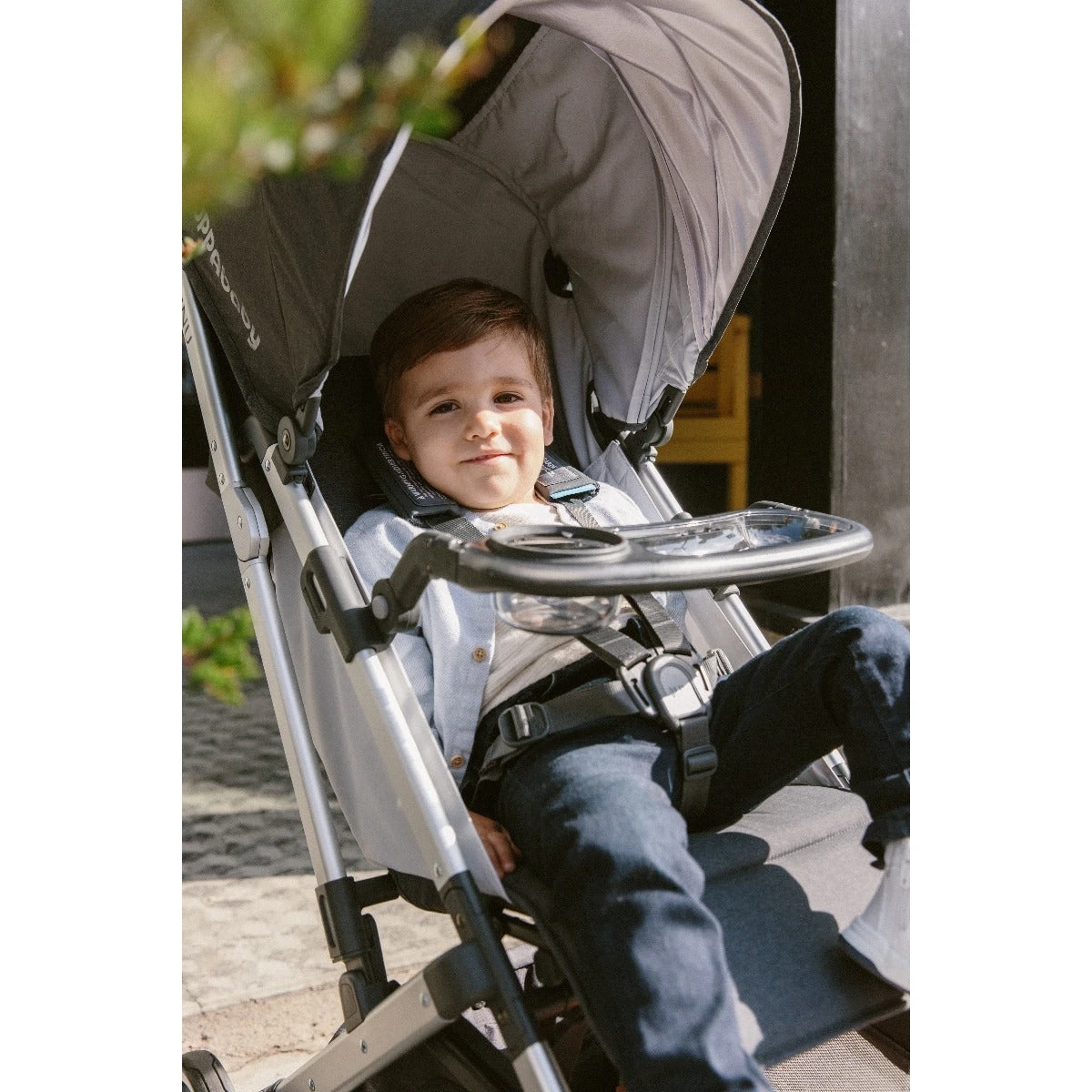 This tray is dishwasher safe and BPA free and your storller can be easily folded with it attached.