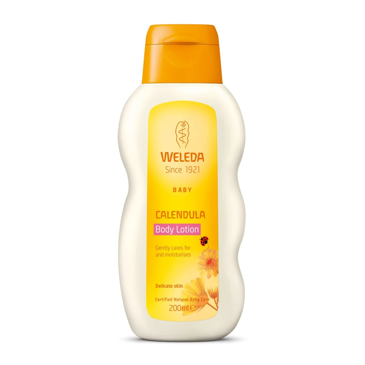 Gently care for delicate skin with this light baby lotion. A mild and light milk with caring organic almond and sesame oils and soothing extracts of organic calendula and chamomile. Enriched with perfectly compatible lipids in a lotion which supports newly developing skin in its natural protective job. Baby’s skin is left velvety-soft and smelling of nothing but baby, making everyone smile!