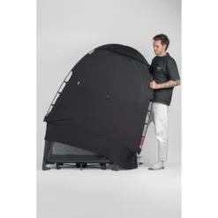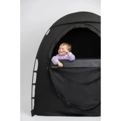 Made from breathable, stretch-knit fabric, the Rest Nest fits easily over standard travel cots, portacots, and toddler beds. Its innovative design allows for airflow and comfort, while blocking out light and limiting visual distractions — perfect for hotel rooms, daycare, or home use.
